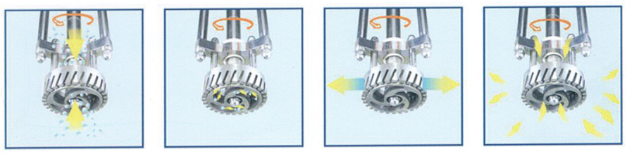 物料在水鍋、油鍋內(nèi)通過(guò)加熱、攪拌進(jìn)行混合反應(yīng)后,由真空泵吸入乳化鍋,通過(guò)乳化鍋內(nèi)上部的攪拌、聚四氯乙烯刮板迎合攪拌鍋形體,掃凈刮壁粘料,使被刮取的物料不斷產(chǎn)生新界面,再經(jīng)過(guò)葉片與回轉(zhuǎn)葉片的剪斷、壓縮、折疊,使其攪拌、混合而向下流往鍋體下方的均質(zhì)器處,物料再通過(guò)旋轉(zhuǎn)的切割輪與固定的切割套之間所產(chǎn)生的強(qiáng)力的剪斷、沖擊、亂流等過(guò)程,在剪切縫中被切割,破碎成200nm-2um的微粒,由于乳化鍋內(nèi)處于真空狀態(tài),物料在攪拌過(guò)程中產(chǎn)生的氣泡被抽走。